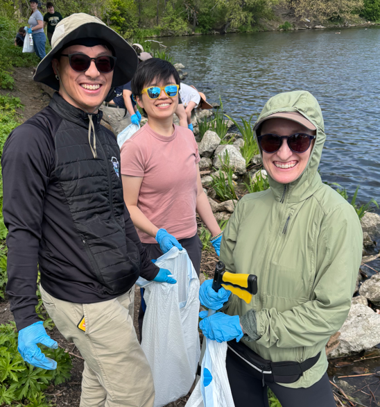 2025 Chicago River Day volunteers at Canal Origins Park along the South Branch of the Chicago River.