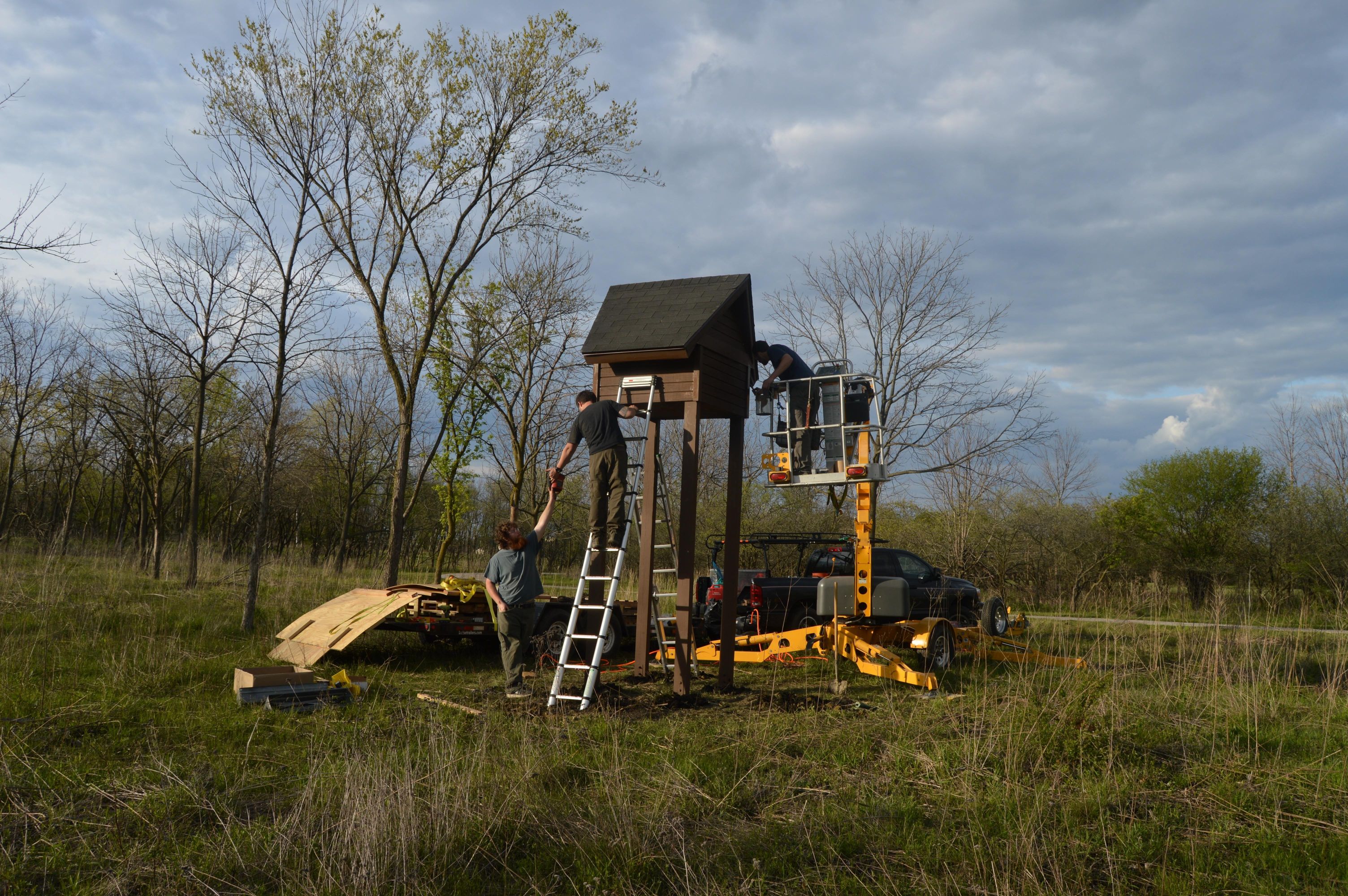 Three more platforms were installed in 2016, and the fifth was installed in early 2018. The effort paid off: in spring 2020, the first breeding pair using one of these platforms successfully raised two chicks at Beaubien Woods.